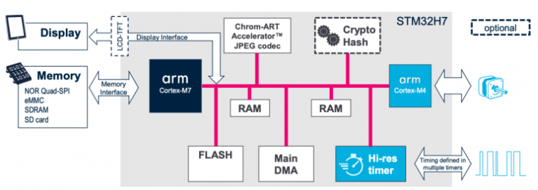 (이미지 출처: 풍부하고 복잡한 애플리케이션을 위한 STM32H7 MCU, 슬라이드 29 )