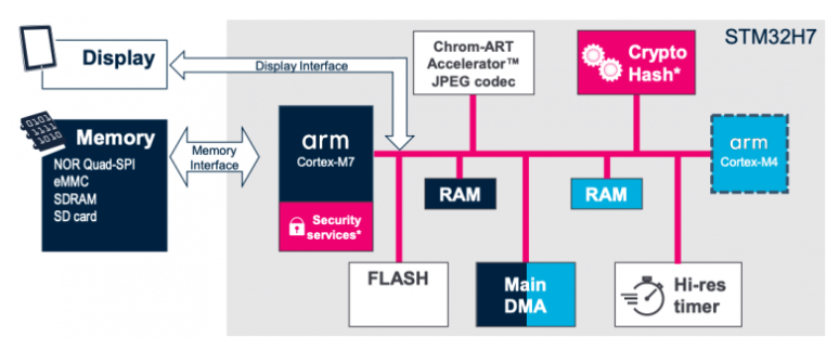 (이미지 출처: 풍부하고 복잡한 애플리케이션을 위한 STM32H7 MCU, 슬라이드 28 )